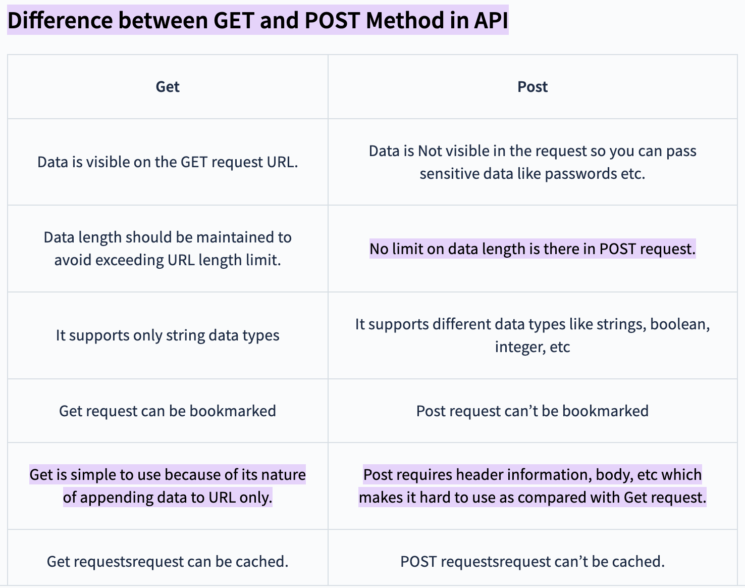 Note: It is important to note that GET and POST requests are only not the only request methods available in the HTTP protocol. There are also other methods such as PUT, DELETE, PATCH, etc., which are used for other types of operations in the context of an API.