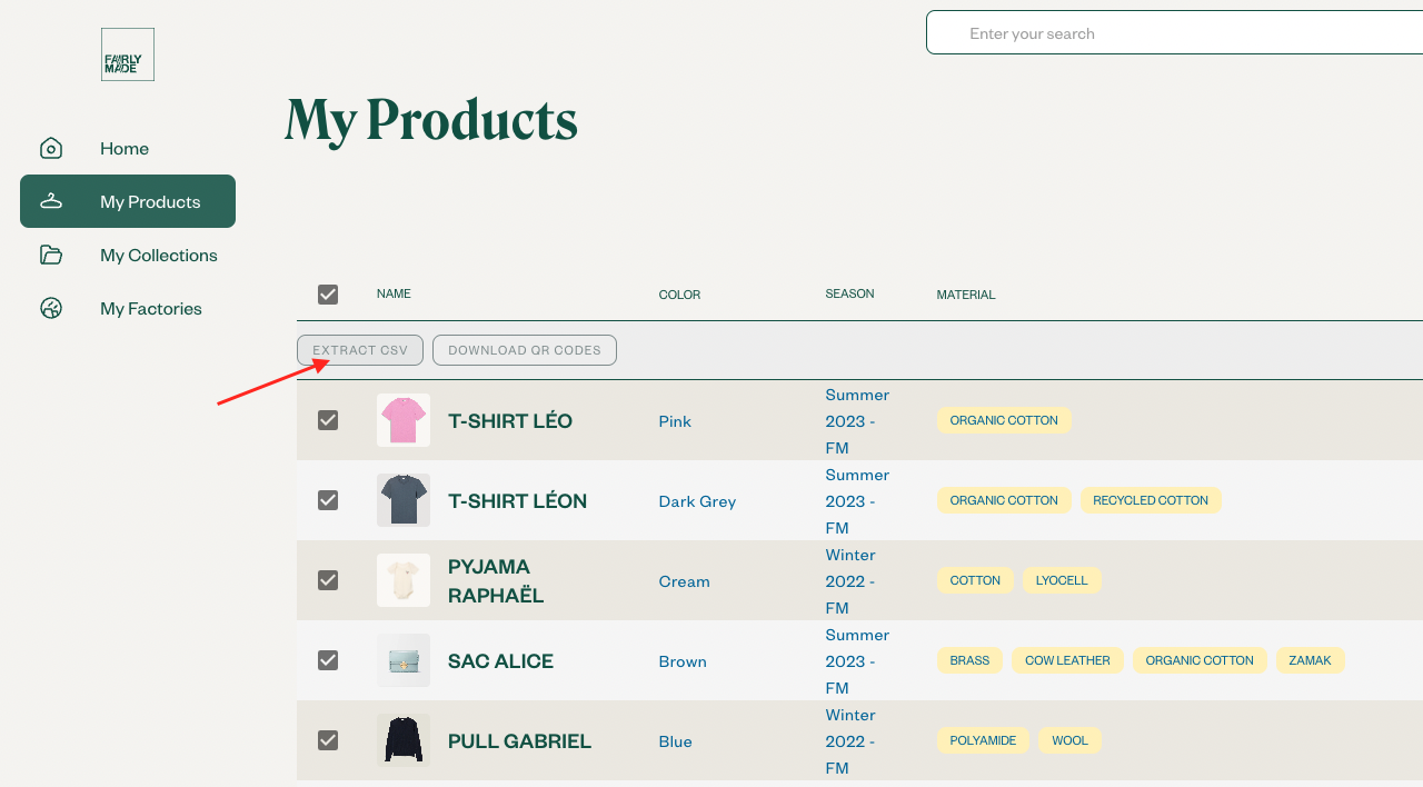 - You can retrieve the links from your platform account by clicking on the My Products tab and then “Extract CSV”: