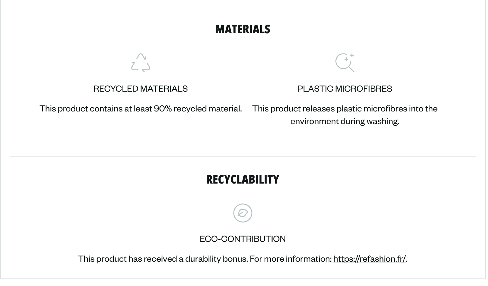 Example: show the impacts on one t-shirt but not on another?In order to keep the product sheets consistent, unfortunately, they cannot be customised by product.